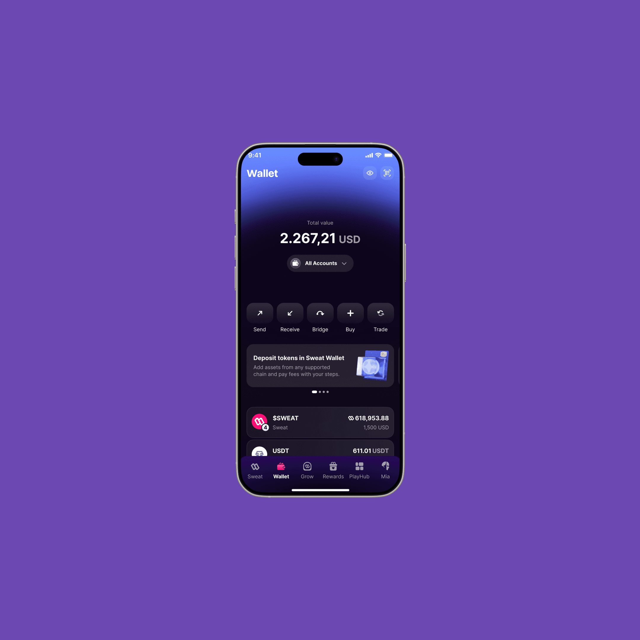 Sweat Wallet is a consumer crypto wallet built to onboard a mainstream audience into Web3. I led product design from zero to scale, owning experience strategy, design principles, and system foundations to support growth at millions-of-users scale.
