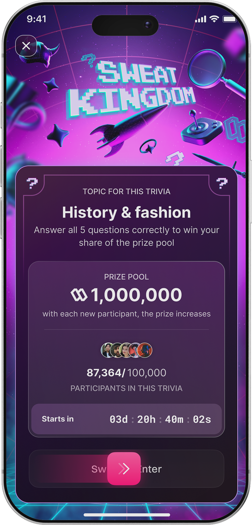 Weekly loops (Sweat Kingdom, Voting, Mia) reinforce mastery, progression and engagement